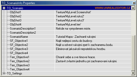 No a teď důležitou věc levelu. Vložte si někam, na místě nezáleží, TO_ScenarioInfo. |
